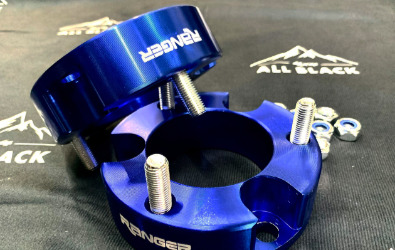RANGER前避震墊塊25毫米T6061鋁雷射切割陽極氧化藍色,可將車輛前部抬高約2英寸(50 毫米)。升高墊塊不是1:1的比例,這意味著車輛提升的高度遠大於墊塊的實際厚度。原因是下控制臂因其角度和長度而增加了升力。51毫米後鋼板墊塊套件則將車輛後部增加了2英寸(45-48 毫米)。
